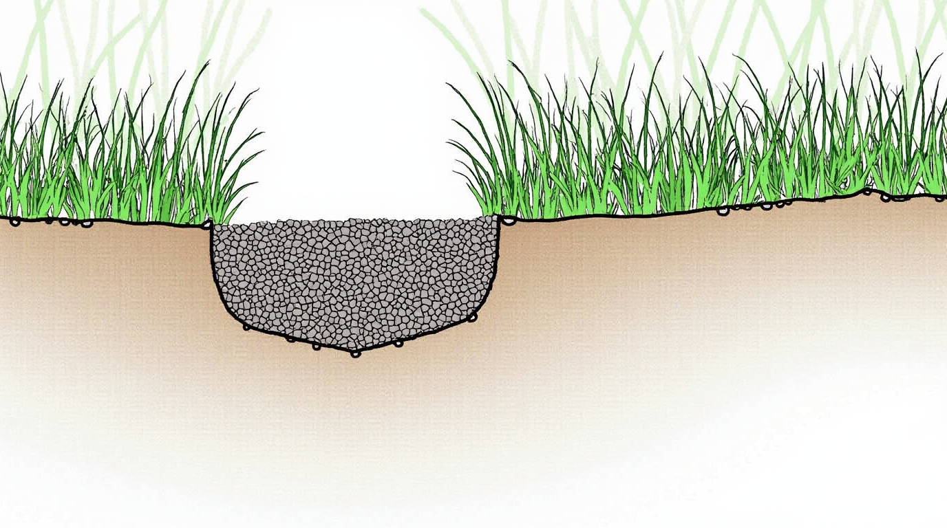 Fill with topsoil to 25–30 cm depth, sloped for drainage